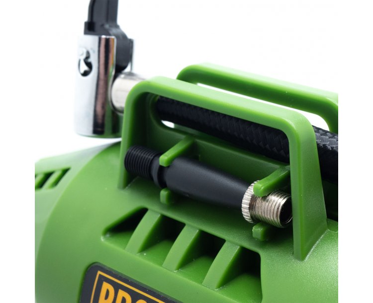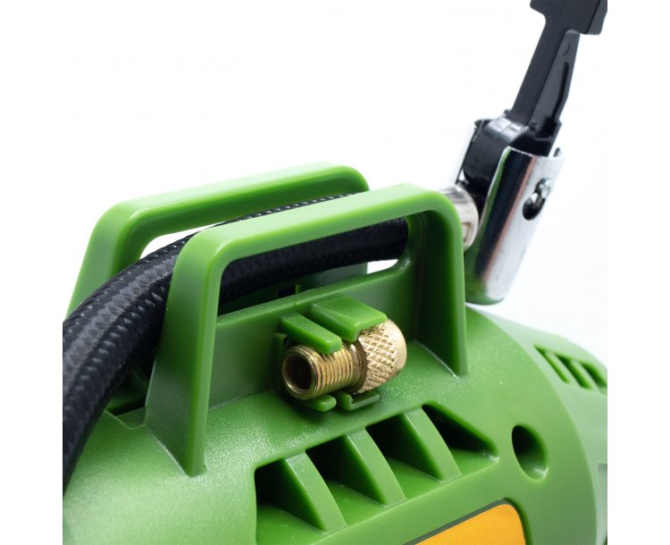 Aku kompresor je určen ke kontrole a k doplnění potřebného tlaku v pneumatikách. Součástí balení jsou pneu adaptery k nafouknutí sportovních míčů, nafukovacích lehátek, matrací a hraček. Na displeji kompresoru je možnost volby požadovaných jednotek a cílové hodnoty tlaku při kterém se kompresor automaticky vypne. Spínač kompresoru je vybaven pojistkou proti samovolnému spuštění a aretací spínače v poloze zapnuto. Stroj je dodávaný v kartonu bez akumulátoru a nabíječky.