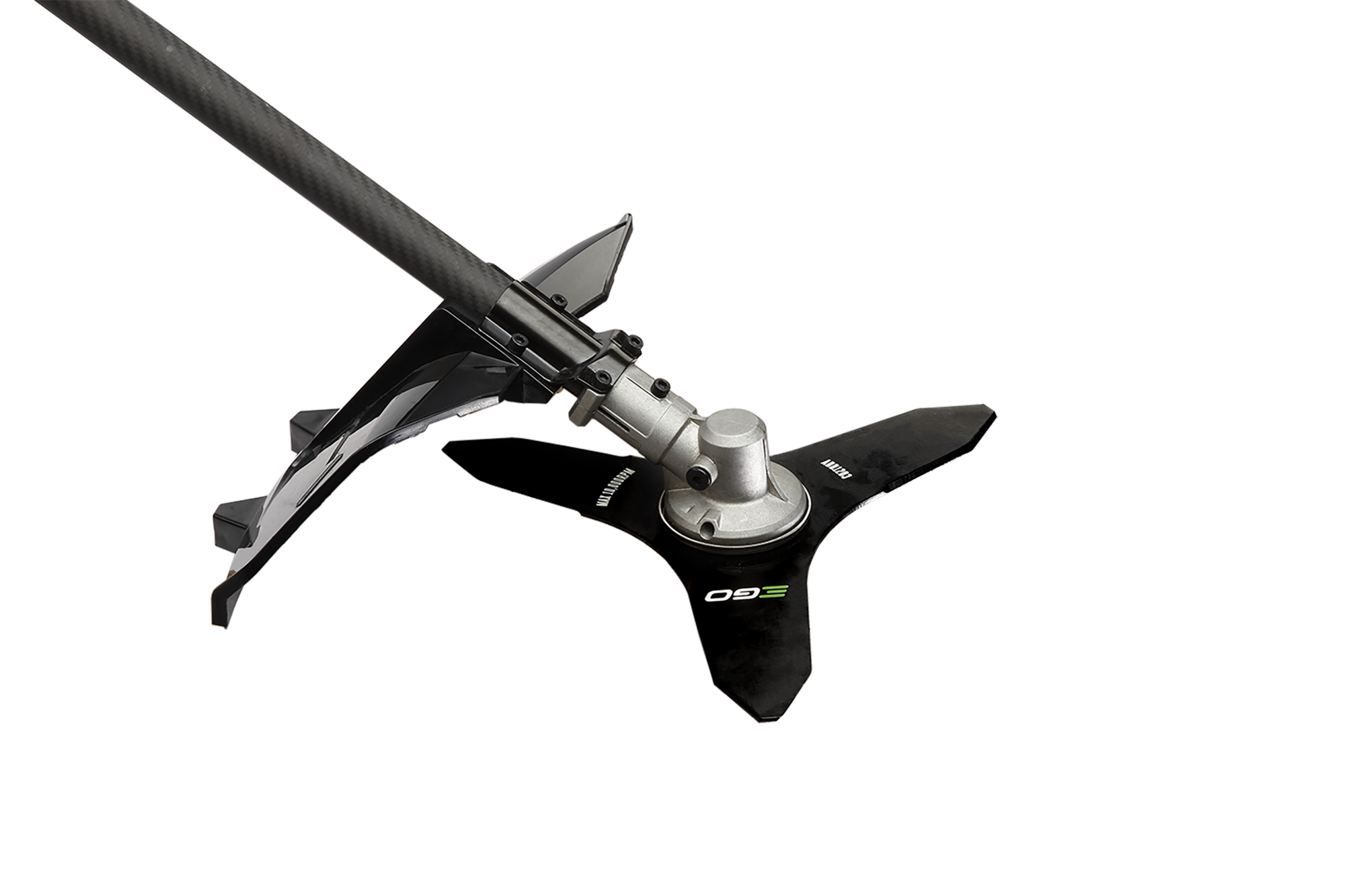 Díky ovládacím řidítkům je držení křovinořezu při práci velmi stabilní, bezpečné a pohodlné a stroj je vhodný i pro použití s ocelovým travním kotoučem. Nylonová žací struna o ∅ 2,4 - 3,0mm namotaná na cívce poloautomatické strunové hlavy se v případě potřeby automaticky prodlouží pouhým poklepem strunovou hlavou o zem. Když je zásoba struny na cívce spotřebována, její doplnění je velmi snadné. Dokonalá ochrana před odlétávající trávou je zajištěna díky rozměrnému a robustnímu bezpečnostnímu krytu. Na pohon vyžínače lze použít baterii ze sortimentu EGO Power+ Professional X a např. baterie 28Ah vám umožní pracovat s ocelovým kotoučem nepřetržitě až 7 hodin. Výkonný a účinný bezuhlíkový motor je zavěšen v horní části nosného tubusu, vyrobeného z karbonových vláken. Tubus je tak mnohem lehčí, odolnější a pevnější než běžné hliníkové. Navíc při zatížení a prohnutí se bez problémů vrátí do původní polohy. U hliníkových tubusů hrozí nebezpečí nevratného ohnutí a je nutná výměna. Díky eleasticitě a houževnatosti karbonu tubus absorbuje velkou část vibrací od pracovního nástroje a nepřenáší na řidítka a ruce uživatele. Stroj je vhodné pro dokončovací práce při likvidaci travního porostu jak kolem zídek, plotů, stromů, keřů a jiných překážek, tak i na rozlehlejších plochách s nálety a křovinami. Stroj je mimořádně tichý a vhodný proto na použití v obydlené zástavbě, areálech nemocnic, škol a vůbec všech míst, která jsou citlivá na hlučnost a zápach. Díky nízké hmotnosti, zavěšené na dvojitém profesionálním ramenním postroji a dokonalému vyvážení stroje nepocítíte únavu ani po celodenní práci.