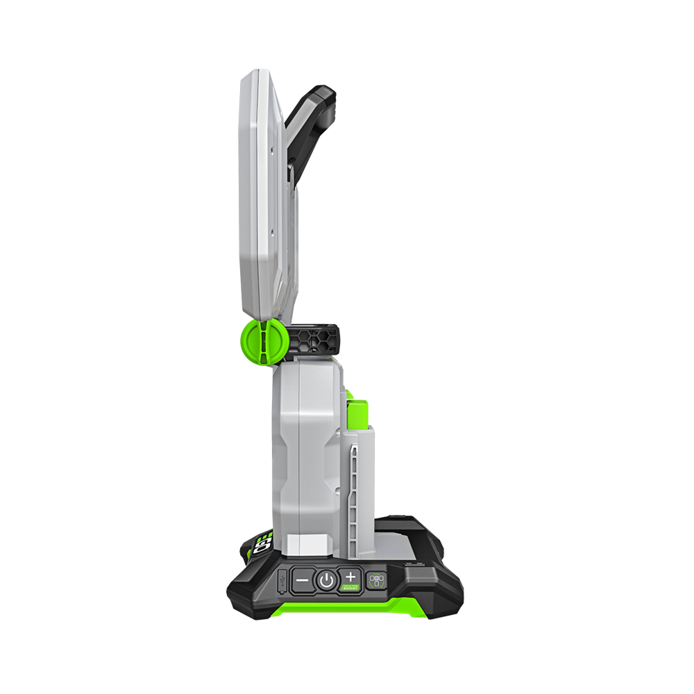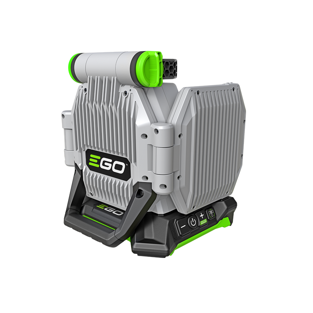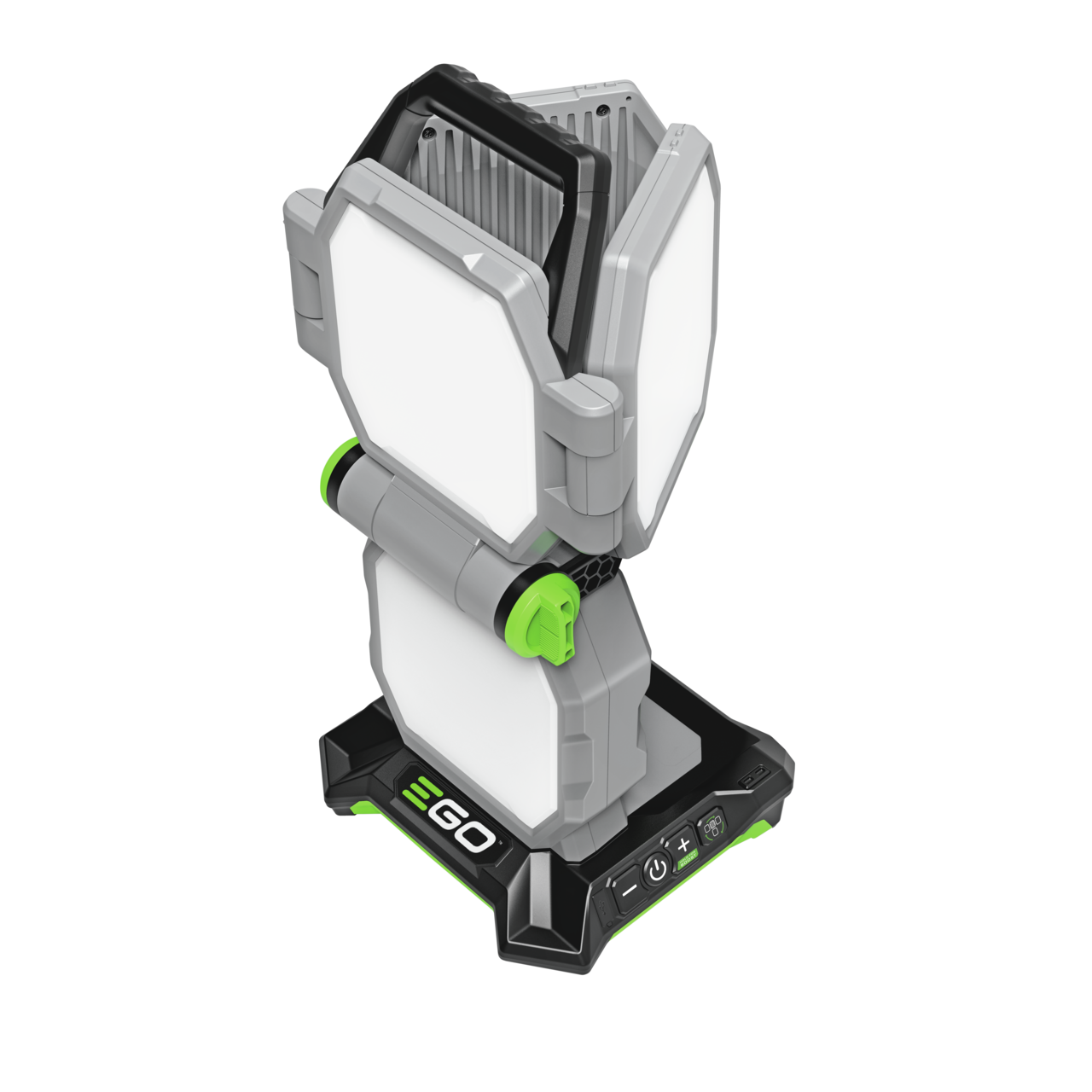 K tomu výborně poslouží lehké, přenosné a výkonné LED osvětlení, rovněž napájené jakoukoliv baterií EGO. Jednotlivé panely jsou osazeny LED (Light Emitting Diode) diodami, které jsou pověstné svojí vysokou svítivostí, energetickou nenáročností a hlavně dlouhou životností, která se udává v desítkách tisíc hodin svícení. Světelný výkon lze nastavit v 5-ti různých intenzitách, od 600 až po 10.000 lumenů. Kompaktní design umožňuje osvětlení směrově nakonfigurovat dle libosti a ve složeném stavu s integrovanou rukojetí lze snadno uchopit a jít. Celé zařízení totiž váží necelých 4,5kg bez baterie. Osvětlovací těleso lze zavěsit za integrovaný závěs, nebo jej ustavit na stabilní podstavec a díky naklápěcím panelům lze osvítit prostorv rozsahu 360°. Použití je možné jak v interiéru, tak i venku. Mimochodem, podstavec je opatřen i výstupem USB-A pro případné dobití např. telefonu. Flexibilitu, výkon a kompaktní rozměry ocení především cestovatelé v kempech, přírodě, rybáři a všichni, kdo potřebují svítit, aniž by hlukem obtěžovali své okolí.