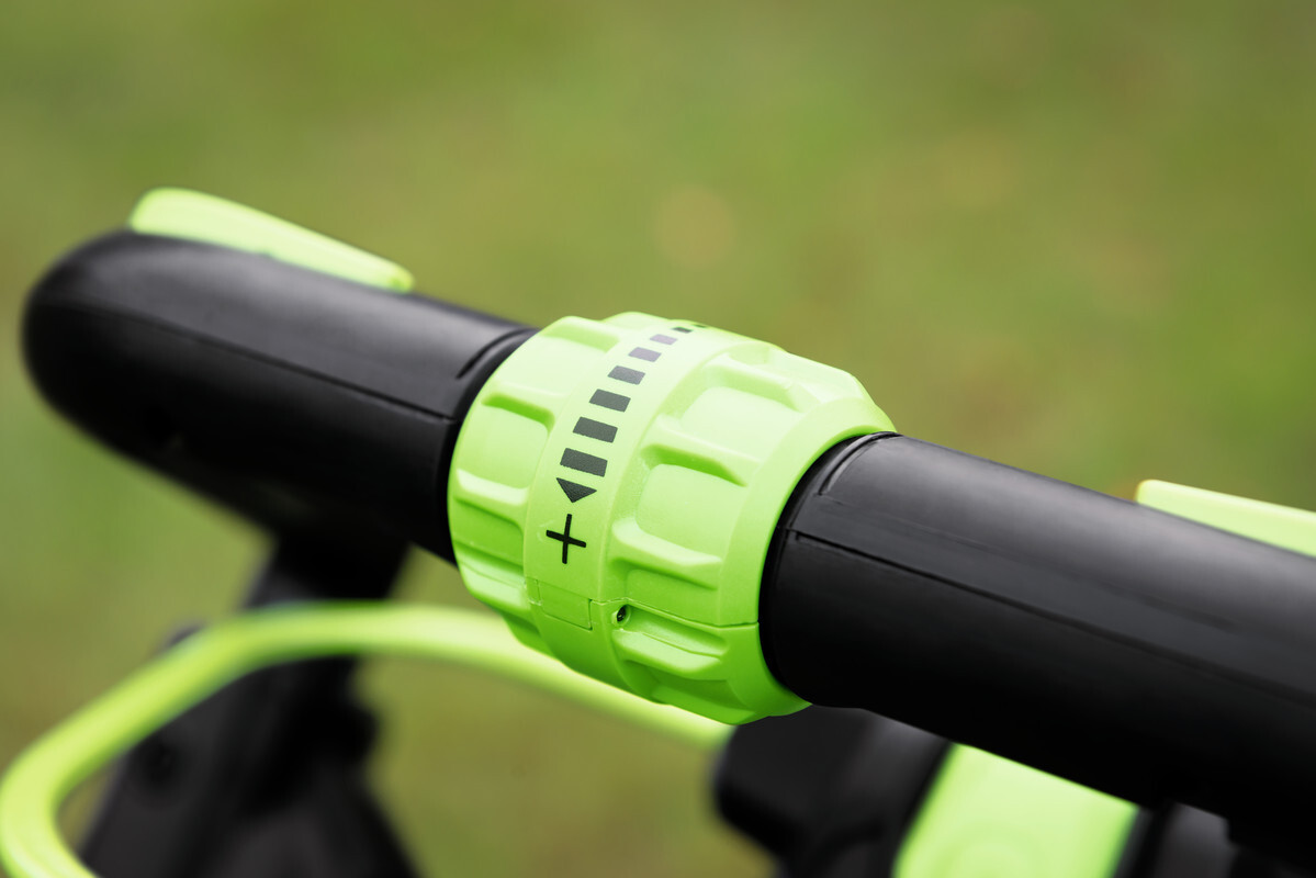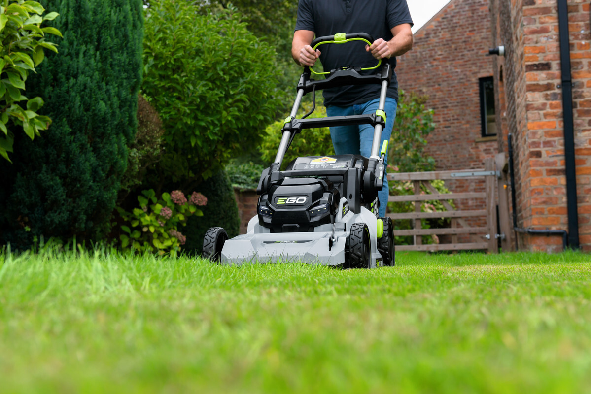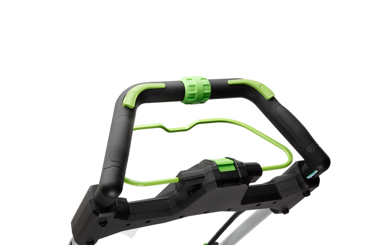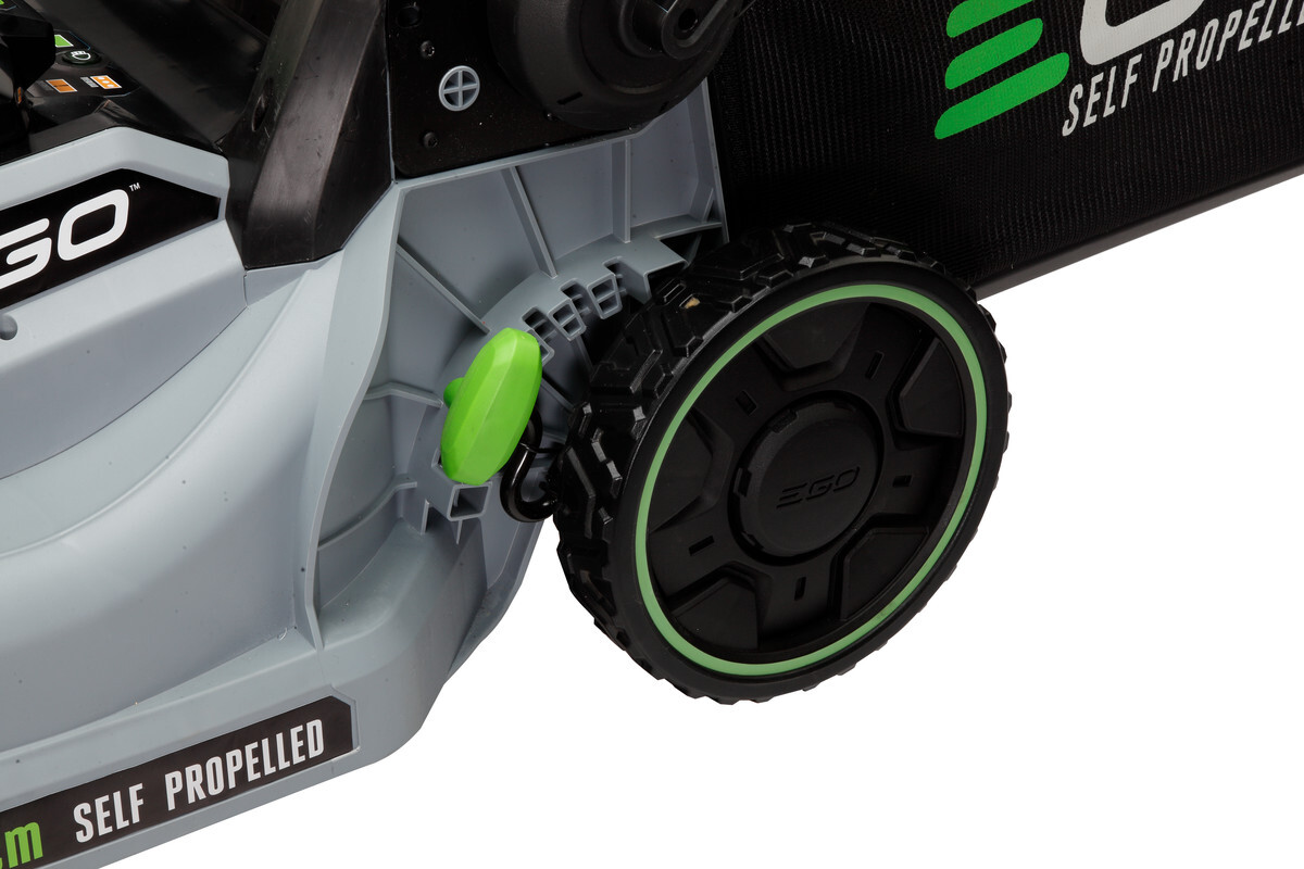 Model EGO LM 1903E-SP - záběr sečení 47cm a plynule proměnlivý pojezd, objem sběrného koše 55L, teleskopická a výškově nastavitelná komfortní rukojeť.