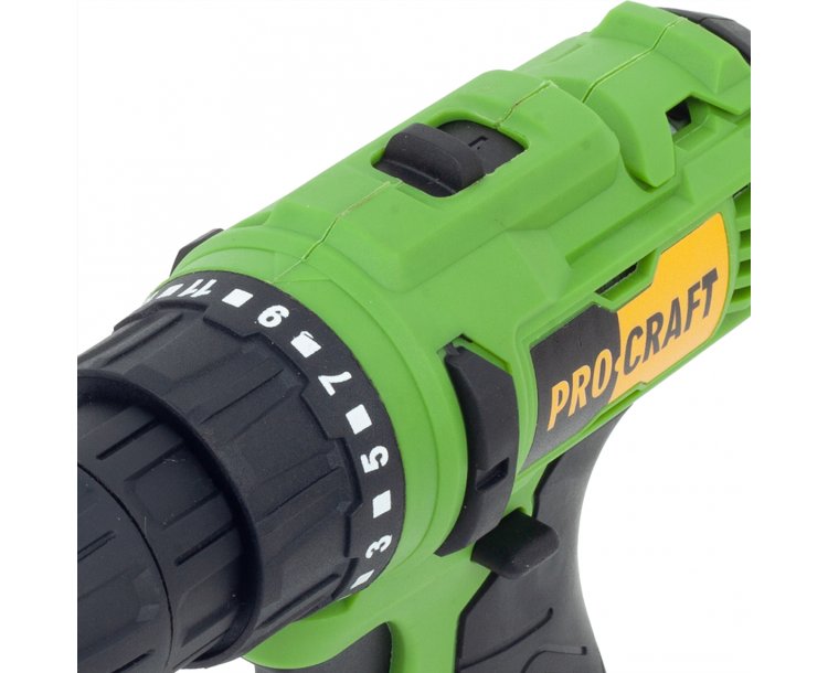 AKU vrtací šroubovák Procraft PA12Li je praktický pomocník pro hobby použití všude tam, kde při vrtání a šroubování nechcete být omezováni přívodním kabelem. Šroubovák s možností změny směru otáček pravý/levý chod a točivým momentem 22Nm je vhodný ke šroubování vrutů, matic a šroubů s použitím 1/4" nástavců - bitů. Rychloupínací sklíčidlo umožňuje upnutí vrtáků a stopkových nástrojů do průměru 10mm. Šroubování na 1. a vrtání na 2. rychlostní stupeň lze provádět s plynulou regulací otáček Stroj je vybaven integrovaným LED osvětlením pracovní plochy s funkcí dosvitu. Součástí dodávky jsou 2 akumulátory, nabíječka. Balení karton.