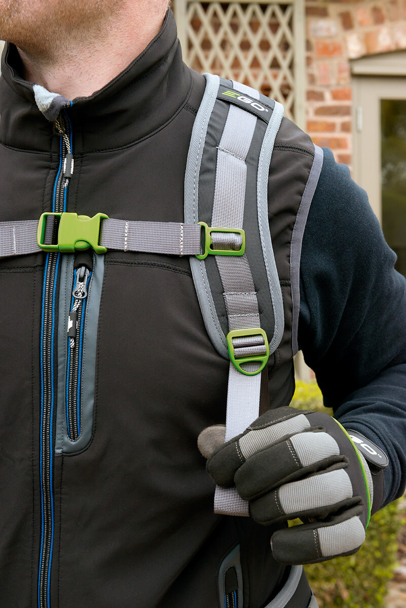 Profesionální úklid povrchů vyžaduje výkonný a spolehlivý stroj. Uklizený trávník na podzim v zámeckých zahradách, parcích nebo na zahradách většinou zakryje vrstva spadaného listí z okolních stromů. Nebo čisté chodníky ve městech, areálech nemocnic, škol a dalších institucí citlivých na hlučnost zbavené zbytky posečené trávy a jiných nečistot. To je práce přesně pro tento zádový fukar. Zádový AKU fukar díky výkonné turbíně a zvýšenému režimu "BOOST" vyfukuje vzduch rychlostí až téměř 200km/h. To je dostatečný výkon pro odklizení spadaného listí z parku nebo pro úklid chodníku od zbytků posečené trávy, prachu a jiných nečistot. Dokonce je schopen spolehlivě "odfouknout" i vrstvu lehkého, čerstvě padlého sněhu z chodníků či parkovišť. Pro pohodlnou práci je stroj nesen na ramenou obsluhy a komfortní postroj dokonale rovnoměrně rozkládá hmotnost baterie na obě ramena. Pro snadnou manipulaci je celý stroj dokonale ergonomicky vyvážen. Velkokapacitní výfukový tubus s možností použití ploché trysky obluha snadno nasměruje přesně do místa. Rukojeť je na tubusu letmo uložena tak, že se přizpůsobí každé postavě uživatele a je opatřena bezpečnostní pojistkou, která zaručuje v případě uvolnění okamžité vypnutí stroje. Na rukojeti je umístněn vypínač, který zajišťuje při stisknutí plynulé a postupné spuštění stroje a fixátorem pro aretaci aktuálně nastavené rychlosti. V horní části rukojeti je v dosahu prstu umístěno tlačítko "BOOST". Díky příjemné ovládácí rukojeti potažené měkčenou gumou, je držení a ovládání fukaru při práci velmi stabilní, bezpečné a pohodlné. Na pohon fukaru lze použít jakoukoliv baterii ze sortimentu EGO a např. baterie 5,0Ah vám umožní pracovat nepřetržitě od 15 min v režimu "BOST" až do 120 minut v nízkém režimu. Naše lithiové baterie EGO Power+ 56V Arc Vám poskytnou dostatek energie pro pohon dostatečně výkonného a účinného bezuhlíkového elektromotoru s přímým náhonem na vysokorychlostní turbínu. Stroj je mimořádně tichý. Nízká hmotnost, rozložená na ramena obsluhy, pohodlný úchop a snadná manipulace dělají z tohoto fukaru skutečného "profíka" jak do firmy, tak i komunálních služeb.