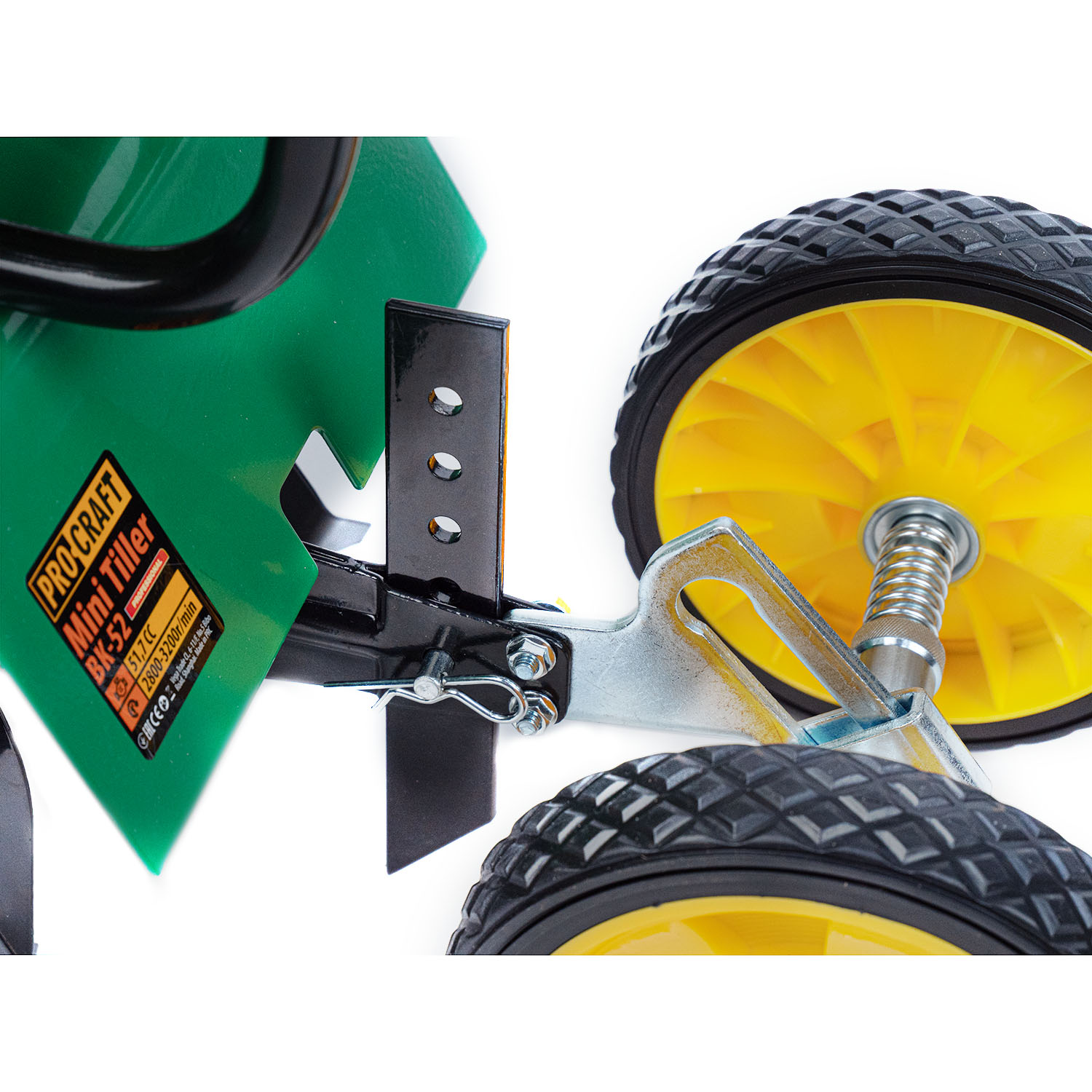 Regulace rychlosti pojezdu a otáček, nastavení hloubky Příkon (W) 1400 Otáčky (min-1) 2800-3200 Pracovní hloubka (mm) 160 Šířka záběru (mm) 300 Objem palivové nádrže (l) 1,2 Obsah motoru (cm3) 51,7