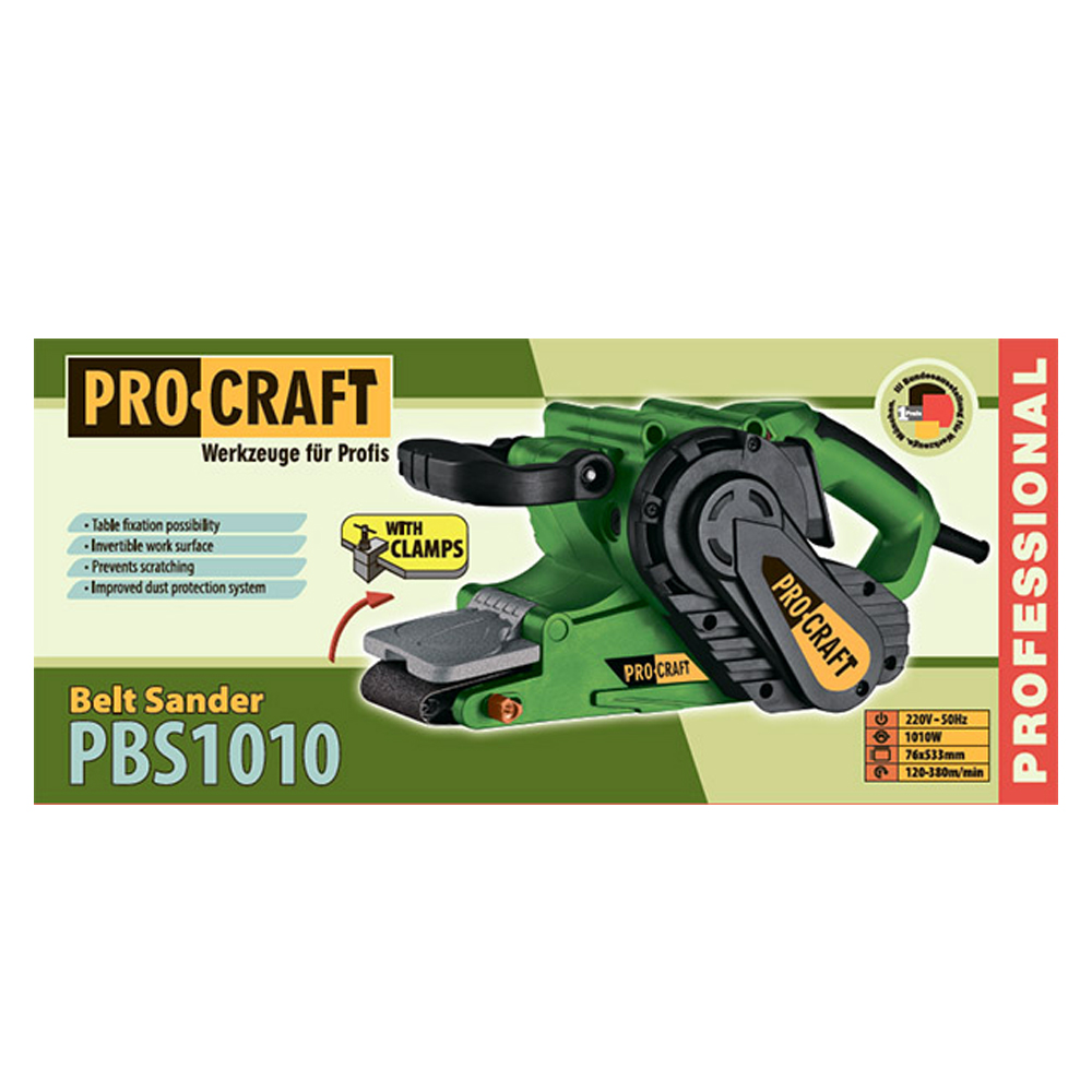 Pásová bruska je určena k výkonnému rovinnému broušení dřevěných materiálů - trámů, prken, latí i deskových materiálů. Je vybavena textilním zásobníkem prachu, do kterého se odsává obroušený materiál. Bruska je vybavena elektronickou regulací otáček, která v kombinaci se správně zvoleným brusivem garantuje kvalitní výsledek práce. Součástí balení v kartonu je brusný pás.