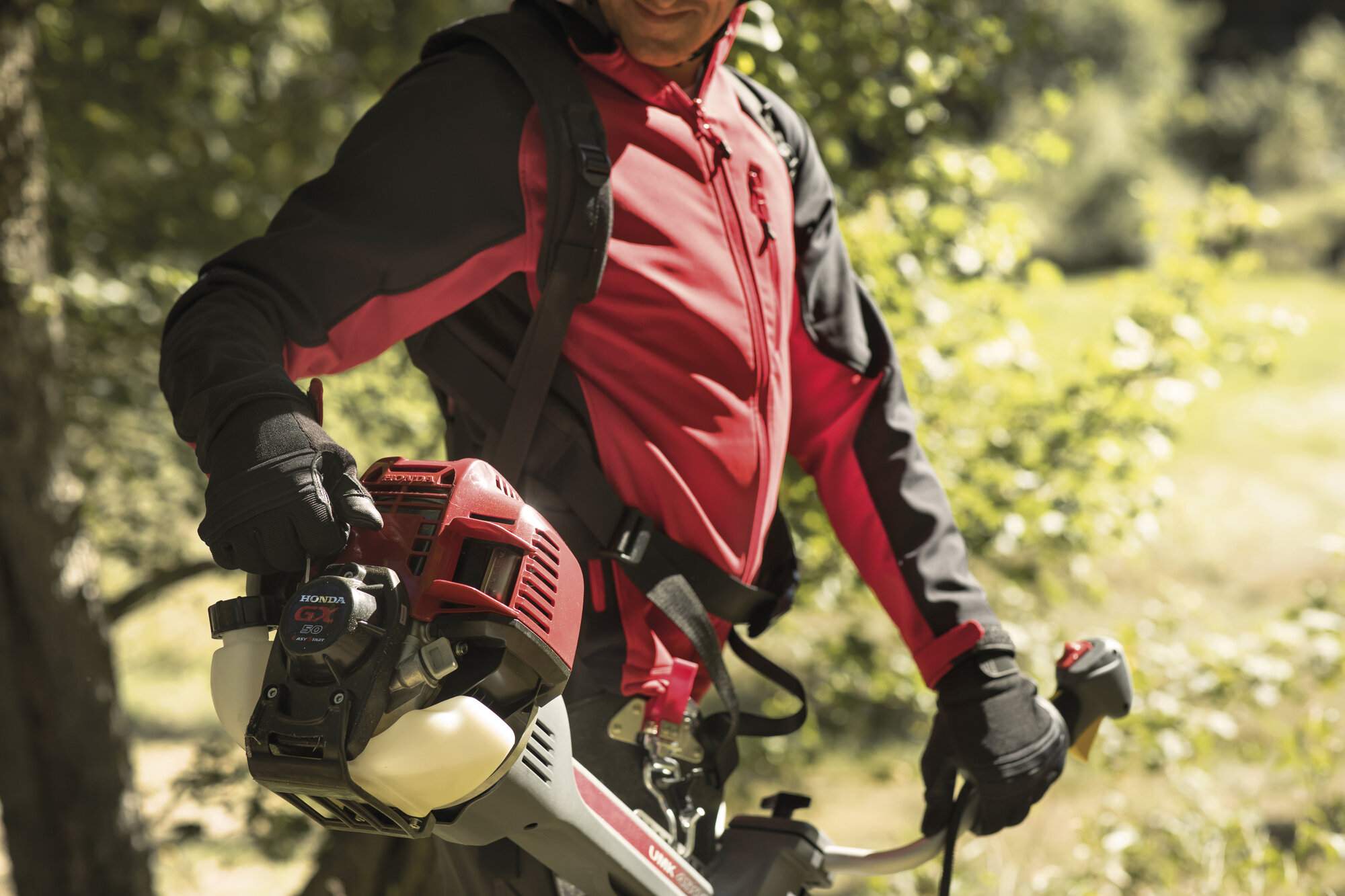 Honda UMK 450 X: ryze profesionální model křovinořezu v nabídce, poháněný 4-taktním motorem se snadným startováním, stabilním a konstantním výkonem, dokonalým antivibračním systémem, který pohlcuje přenášení vibrací od motoru a žacího nástroje do ovládacích rukojetí, komfortním dvojitým zádovým postrojem s bezpečnostní karabinou a automatickou žací strunovou hlavou typu Bump & Feed a 3 zubým žacím kotoučem o průměru 305 mm, tl. 4 mm v základním vybevení.