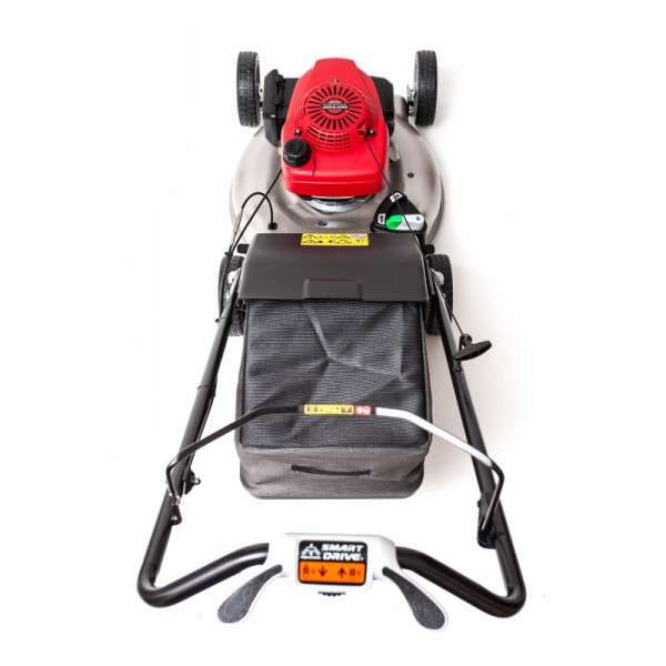 Benzínová sekačka s pojezdem a záběrem 53 cm pro udržování travní plochy do 2000 m2 s motorem HONDA 5,5 HP a košem 73 litrů.