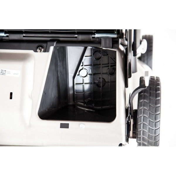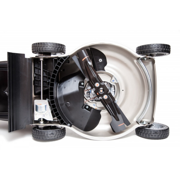 - Podvozek a žací komora sekačky jsou speciálně tvarovány tak, aby se maximálně efektivně zlepšil tok ohromného množství vzduchu v prostoru pod sekačkou a následný průtok vzduchu, pumpovaného rotujícm žacím nožem, opatřeným ventilačními lopatkami, do sběrného koše. Značně se tím zlepšuje sběrný výkon sekačky.