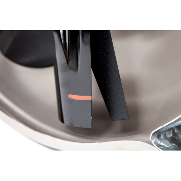 - Nůž je vyroben tak, aby se díky své speciální konstrukci a použitému materiálu při náhodném nárazu na pevnou překážku sám zdeformoval a do jisté míry absorboval energii nárazu aniž by se zlomil. To znamená nízké provozní náklady a delší životnost stroje.