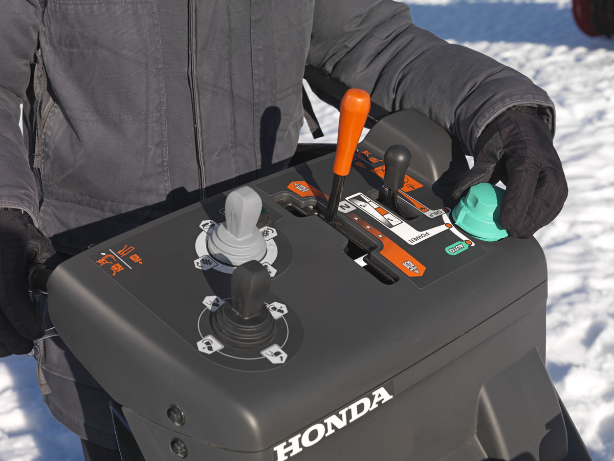 Hybridní pohon spočívá v kombinaci spalovacího motoru s elektrickým pojezdem. Motor Honda iGX s přehledem plní poměrně přísnou emisní normu EURO 5, disponuje elektronickou řídící jednotkou s automatickou regulací otáček v závislosti na zvoleném pracovním režimu. Tím, že jeho hlavní zátěží je přímý náhon 92 cm širokého frézovacího mechanizmu, má ohromnou rezervu výkonu na to, aby hravě zvládl zpracovat a odhodit až 83 tun sněhu za hodinu do vzdálenosti až 19 m. Výškově a stranově nastavitelný otevřený frézovací mechanizmus s bočními disky ovládaný křížovým ovladačem na ovládacím panelu se přizpůsobí jakýmkoliv nerovnostem, povrchu a zakrojí se i do těžkého a zmrzlého sněhu. Do sněhové závěje frézu posouvají pojezdové pásy, které mají vynikající trakční schopnost a výbornou prostupnost terénem, dobře drží stopu při úklidu sněhu ve svahu, nepoškozují povrch a stroj je pořád dostatečně obratný pro to, aby se mohl pohybovat i na méně přístupných a menších místech nebo v blízkosti zaparkovaných automobilů. Díky unikátní technice fréza disponuje možností otáčení na místě (pásy jdou proti sobě) a pojíždění lze provádět bez nastartovaného motoru – pouze na baterie. Celý systém jak frézování, tak i pojezdu je ve spojení s motorem elektronicky řízen, tak, že ovládání motoru je automatické v závislosti na zatížení jak od servomotorů pojezdu, tak od frézovacího mechanizmu. Fréza si dle aktuální zátěže automaticky upravuje i rychlost pojezdu. Při couvání se frézovací komora zvedne a při jízdě vpřed se automaticky zase vrátí do původní výšky. Z garáže vyjedete pouze na elektropohon naprosto nehlučně a až na místě frézování nastartujete motor otočením klíčku zapalování jako v automobilu. Komfort ovládání je na maximální možné míře pomocí rozměrných ovladačů a tlačítek, přehledně uspořádaných na ovládycím pultu stroje tak, aby bylo možné je obsluhovat i v rukavicích. Pro majitele parkovišť, lyžařských areálů, hotelů, ubytoven, penzionů a jiných firem, kteří potřebují spolehlivě a rychle odklízet velké množství sněhu z velkých ploch nenajdou na trhu lepší a výkonnější stroj. Ovládání je velmi snadné, naprosto fyzicky nenáročné a fréza pracuje samostatně, přesně podle pokynů obsluhy.