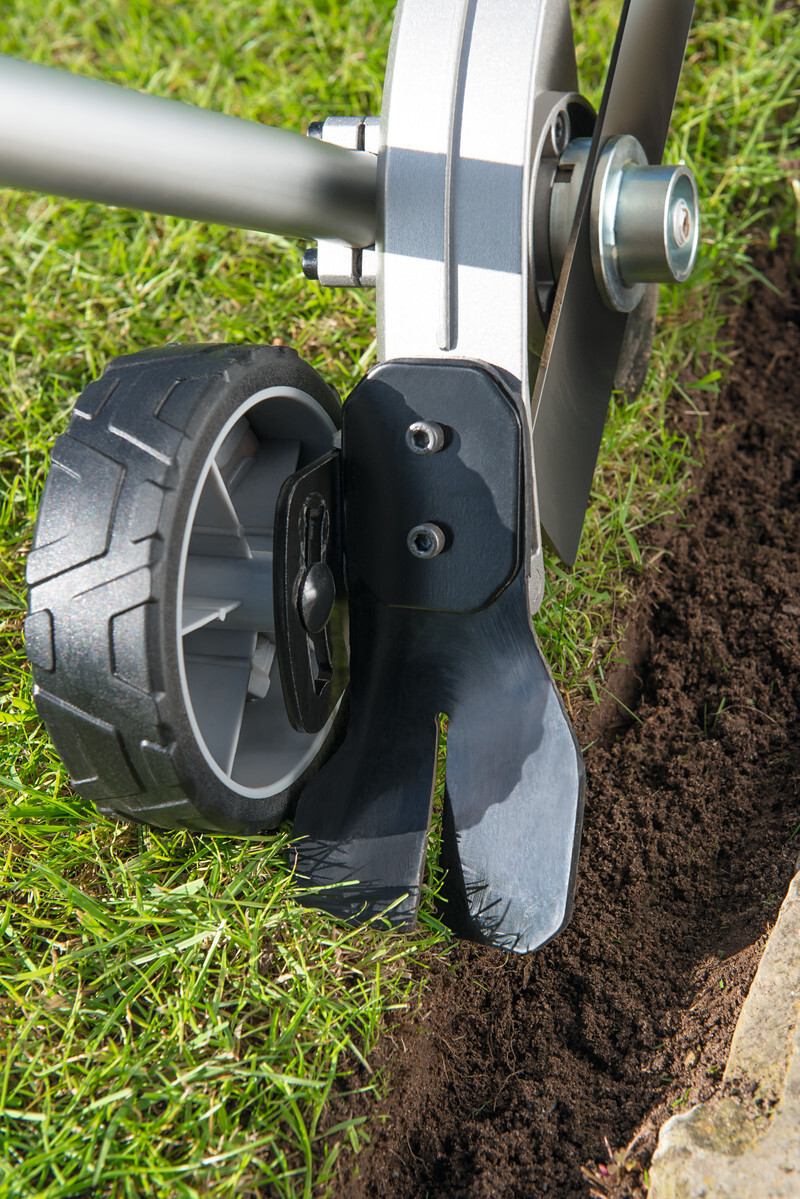 Přesné, pohodlné a hlavně rychlé začištění a zarovnání trávníku v přechodech trávníku na jiné povrchy snadno docílíte při použití nástavce se zařezávačem trávníku. Pracovní nůž o průměru 200 mm zařezávače je vyroben z vysoce odolné oceli se otáčí ve svislé rovině a zařezává do trávníku dle vámi zvoleného tvaru a směru. Hloubku řezu lze plynule nastavit tak, aby vyhovovala hloubce kořenového systému Vašeho trávníku. Značně Vám ulehčí dlouhodobou a otravnou manuální práci se zarovnáváním hrany travních ploch pomocí různých rýčů a škrabek. Nástavec je opatřen bezpečnostním ochranným krytem, tak, aby obsluha byla dostatečně ochráněna proti případnému odlétnutí kamínku a pod. Zavěšením celého stroje na jednostranný nosný popruh pohonné jednotky je práce se zařezávačem trávníku velmi snadnou a pohodlnou záležitostí.