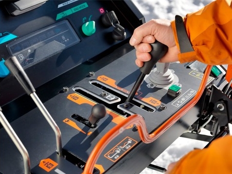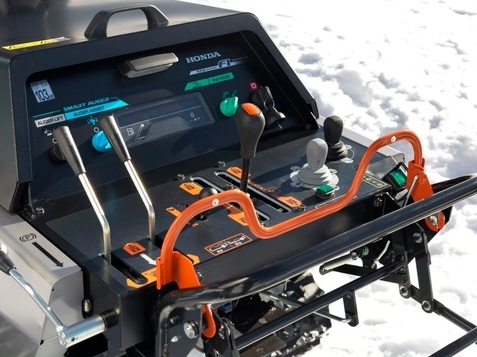 Pásy pojezdu jsou řízeny hydrostatem s plynulou a citlivou regulací rychlosti jízdy. Celý systém jak frézování, tak i pojezdu je ve spojení s motorem elektronicky řízen, tak, že ovládání motoru je automatické v závislosti na zatížení jak od převodovky pojezdu, tak od frézovacího mechanizmu. Fréza si dle aktuální zátěže automaticky upravuje i rychlost pojezdu. Při couvání se frézovací komora zvedne a při jízdě vpřed se automaticky zas vrátí do původní výšky. Tato fréza je opatřena tzv. „G“ senzorem, který automaticky zajišťuje i stranové naklápění frézovacího mechanizmu vzhledem ke svahu. Komfort ovládání je na maximální možné míře pomocí ovladačů, přehledně uspořádaných na ovládycím pultu stroje. Pro majitele parkovišť, lyžařských areálů, hotelů, ubytoven, penzionů a jiných firem, kteří potřebují spolehlivě a rychle odklízet velké množství sněhu z velkých ploch nenajdou na trhu lepší a výkonnější stroj. Stroj ideální do profesionálních služeb.