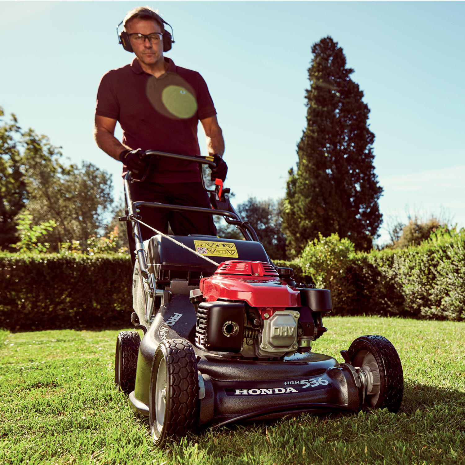 Honda HRH 536 HX: profesionální motorová sekačka s hydrostatickým pojezdem poháněným kardanovou hřídelí, s motorem "profi" řady GXV, s Roto-stopem®, na podvozku odlitém z hliníkové slitiny se záběrem sečení 53 cm,
