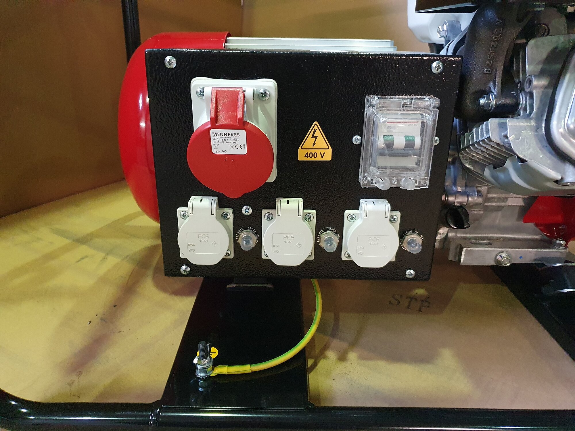 Tato robustní, benzínová třífázová elektrocentrála vysokého krytí IP54 je svým výkonem max. max. 7,0 kVA (3 f.) / 4,0 kVA (1 f.) nejvhodnějším přenosným zdrojem elektrické energie do vlhkých a nehostinných podmínek použití profesionálních hasičů, záchranářů a jiných složek, které potřebují elektrocentrálu odolnou vlhkému a prašnému prostředí. Krytí IP54 znamená, že alternátor není sice prachuvzdorně ochráněn proti částečnému vnikání prachu, ale pouze v míře, která neovlivňuje bezproblémový chod zařízení a stříkající voda při dopadu na stroj pod jakýmkoliv úhlem od svislé osy stroje nemá vliv na chod zařízení. Celá soustava je uložena na pružných silentblocích ve vyztuženém rámu, svařeném z ocelových trubek o průměru 25 mm. Ten zajišťuje mimořádnou ochranu soustavy proti případnému poškození, snadné instalaci do zásahového vozidla a zároveň slouží jako transportní madlo pro snadnou manipulaci. Vzhledem ke své hmotnosti je možné elektrocentrálu za příplatek opatřit transportním kolovým podvozkem nebo hlídačem izolačního stavu. Proto, aby alternátor produkoval napětí 400V / 230V / 50Hz, je motor opatřen automatickým, mechanickým regulátorem otáček tak, aby při jakémkoliv odběru proudy byly otáčky motoru konstantní ve výši 3000 ot./min. Elektrocentrála je opatřena zásuvkami 1x CEE (16A 400V, IP44) a 3x Schuko (16A 230V). Ovládání elektrocentrály je velice snadné a jednoduché. Stačí natankovat, elektrocentrálu postavit na vodorovnou plochu, zkontrolovat olejovou náplň motoru, nastartovat zatažením za rukojeť ručního startéru, počkat pár vteřin na ustálení chodu motoru a do příslušné zásuvky připojit napájený spotřebič. Elektrocentrála splňuje veškeré nároky na elektrickou bezpečnost a je opatřena ochrannými prvky jako je ochrana motoru proti úniku oleje nebo alternátoru proti přetížení. Robustní a pevná konstrukce rámu se nekroutí a spolehlivě tlumí působení vibrací od motoru na podklad. Snižuje se tak hlučnost elektrocentrály a práce je potom příjemnější. Údržba elektrocentrály je zcela nenáročná a spočívá v základní údržbě benzínového motoru.
