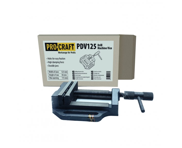 Litinový svěrák Procraft PBV125 je určen k upínání, sevření a fixaci obrobku při šroubování, vrtání, broušení, leštění, pilování atd. Trapézový šroub s jemným stoupáním zaručuje přesné vedení svěráku a pohyb čelistí. Díky 2 drážkám umožňuje připevnění ke všem vrtacím stolům. Balení karton.