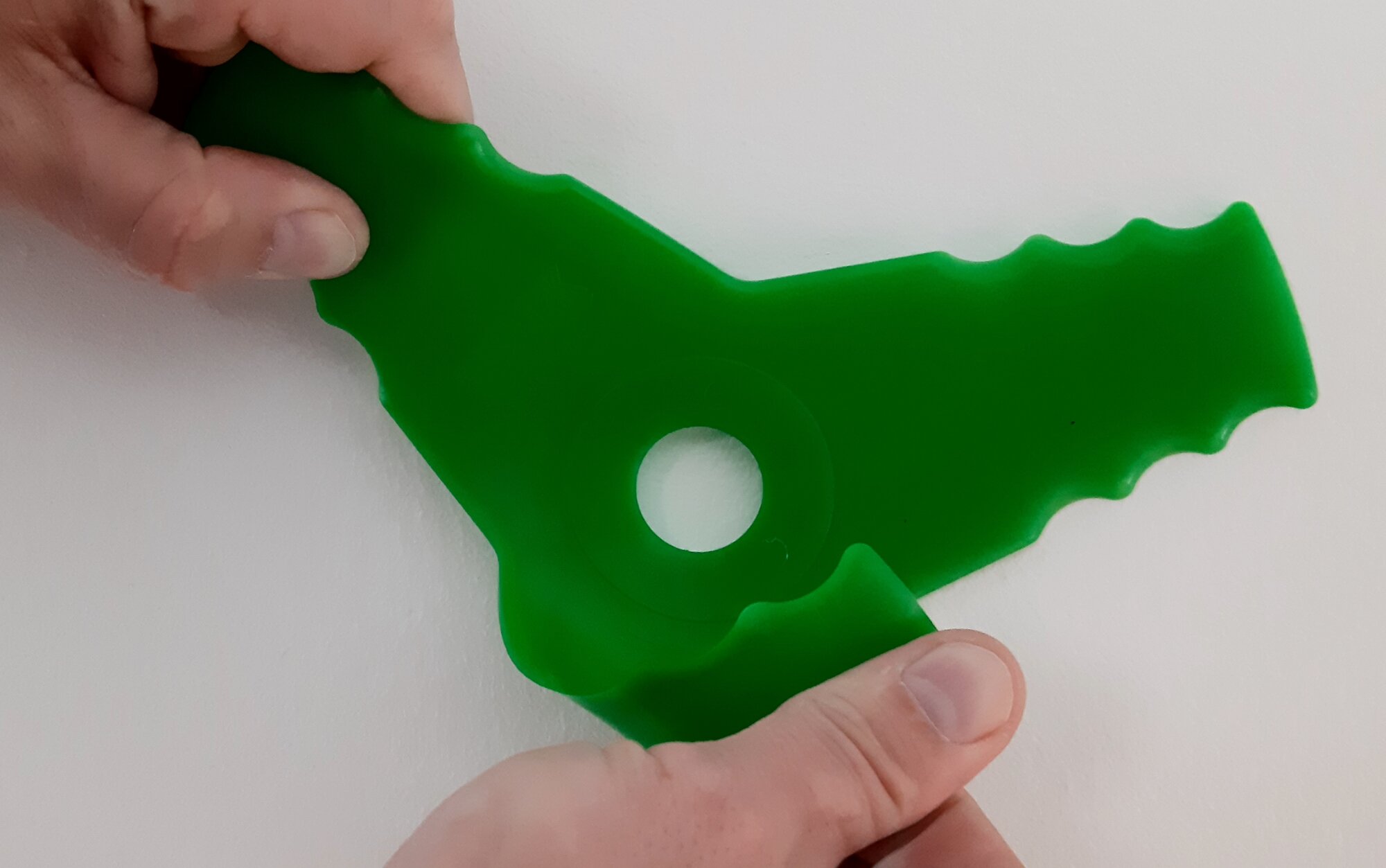 Plastový žací kotouč "Elastoblade" je určen výhradně pro křovinořezy s pevnou náhonovou hřídelí a úhlovou převodovkou ve spodní části stroje jako náhrada za ocelový žací kotouč. Plastový kotouč je velmi pevný a zároveň velmi elastický otáčející se velkou rychlostí. Díky elasticitě nepoškodí pevné překážky a pohltí část případných rázů, které by mohly být přenášeny na ruce uživatele. Při použití se řiďte bezpečnostními pokyny pro použití křovinořezu a žacího kotouče.