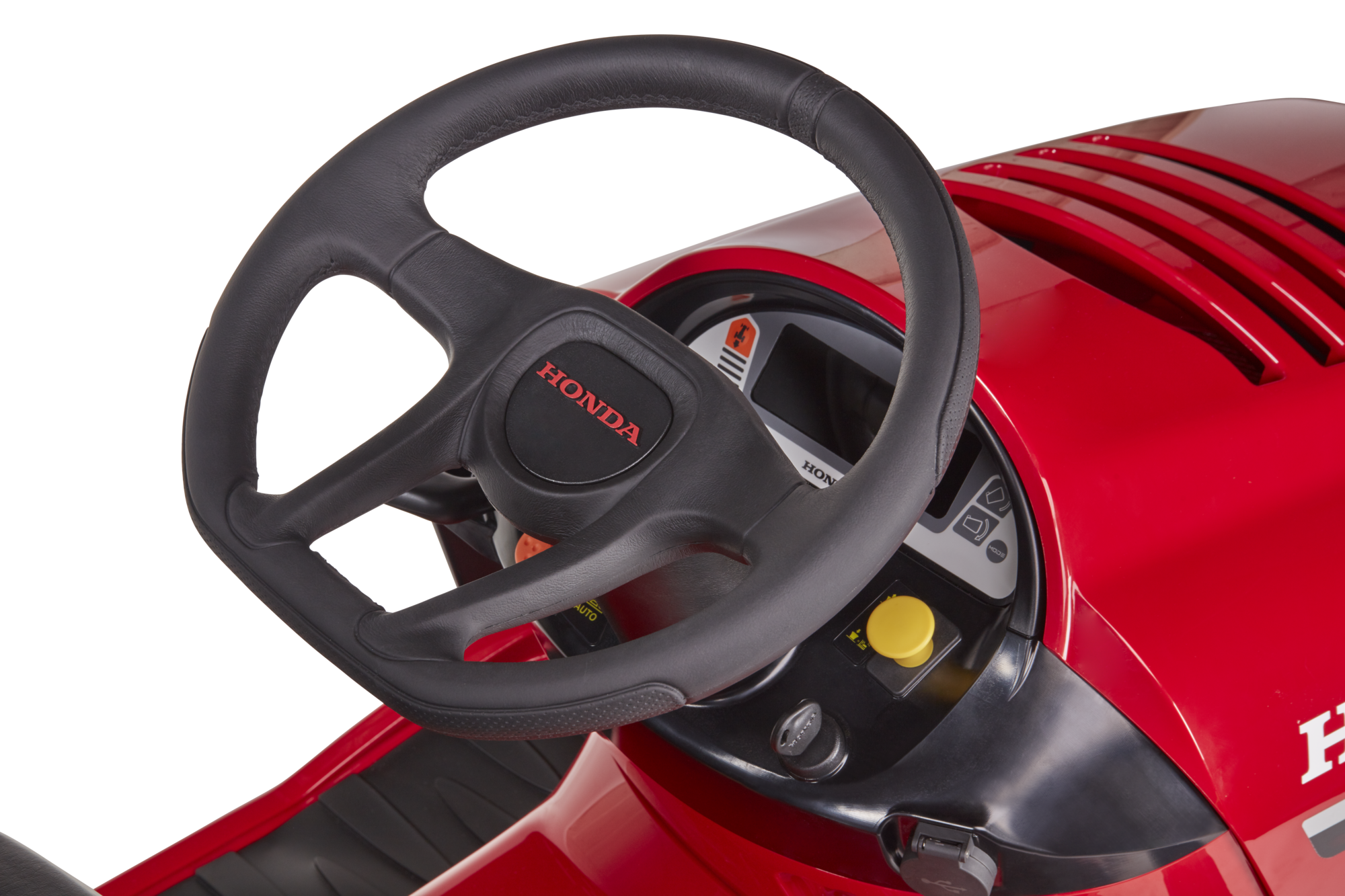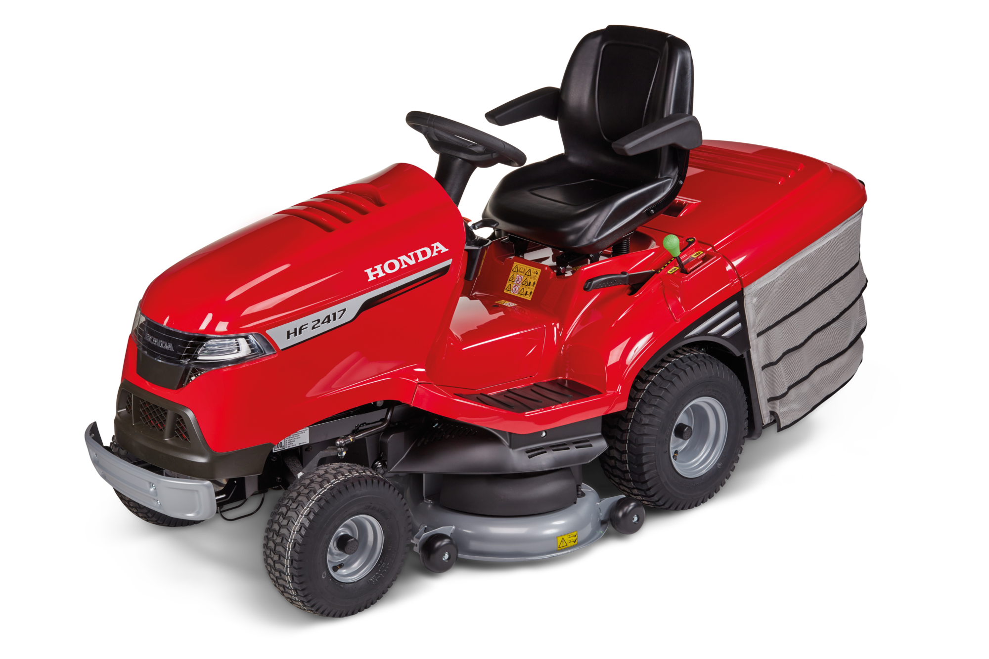 Honda HF 2417 HT: luxusní provedení nabídky zahradních traktorů třídy "Premium" s elektrickým vyklápěním sběrného koše, plynule proměnným hydrostatickým pojezdem a VersamowTM - integrovaným mulčovacím systémem.